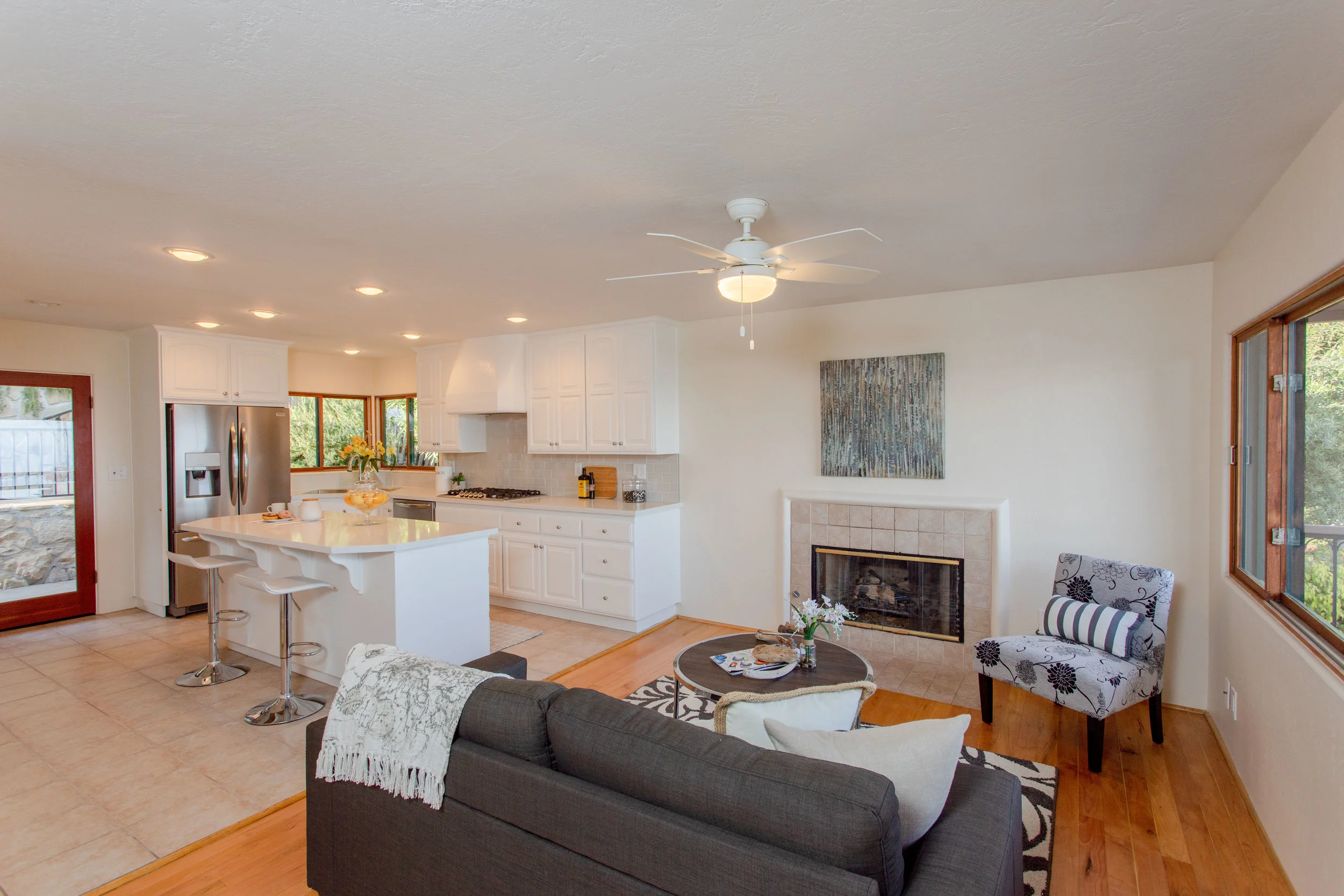 It's all about the view! Unobstructed ocean, island, city lights & sunrise/sunset views, so special you will never want to leave. Designed in the Mediterranean style, this Upper Riviera home has been recently renovated. The floor plan has a wonderful flow & is perfect for entertaining & watching 4th of July fireworks! The gourmet kitchen has new quartz counters, conversation bar, Frigidaire Gallery stainless appliances & opens to the family room. The dining room and living room are also open concept. The entire living area has views from interior as well as the spacious wrap around deck. The master suite has a sitting area, closet with custom built-ins, new ensuite bath & private balcony. SB sandstone view terraces are filled with colorful plantings with two seating areas. Two car garage.