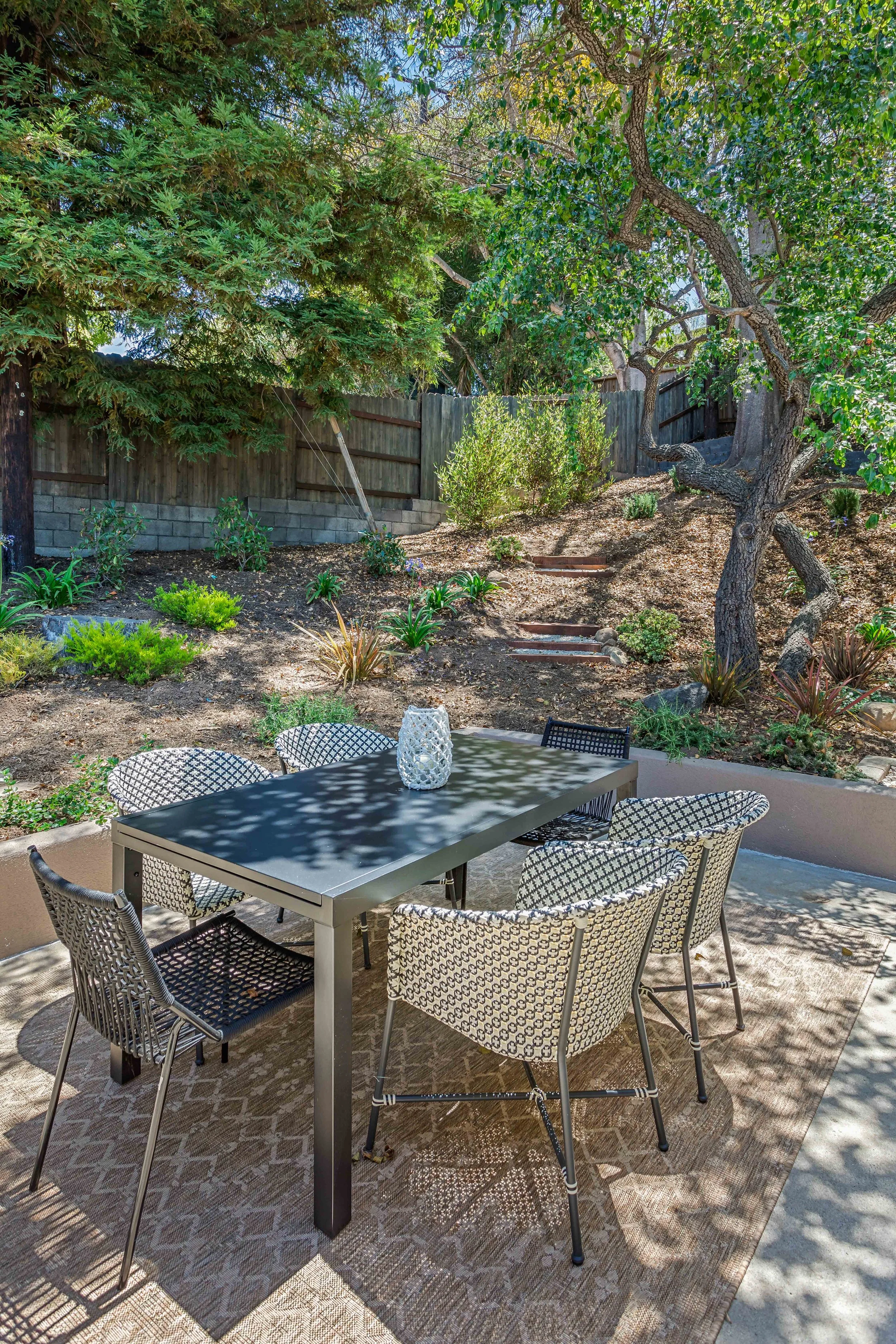 NEW - Stunning remodel just completed on this very special 4 bedroom, 3 bath home in the Racquet Club. The private entry leads to a spacious & open living area with kitchen, formal dining & living room all in a great layout for entertaining with access to the back patio. Kitchen has custom cabinetry with pantry, quartz counters, stainless appliances, breakfast bar and desk area. Primary bedroom has a slider to the back yard, walk-in closet & ensuite bath. Two additional bedrooms share the hall bath. Off the kitchen is another bedroom, perfect for an office, & a third bath. New Milgard windows & sliders throughout. Back yard is peaceful & beautifully landscaped with drought tolerant, colorful plantings. Great patio space with seating & dining areas & a side area with lawn & fruit trees. Two car finished garage with EV port. On a cul-de-sac street, just a block to the Racquet Club pool & tennis court.