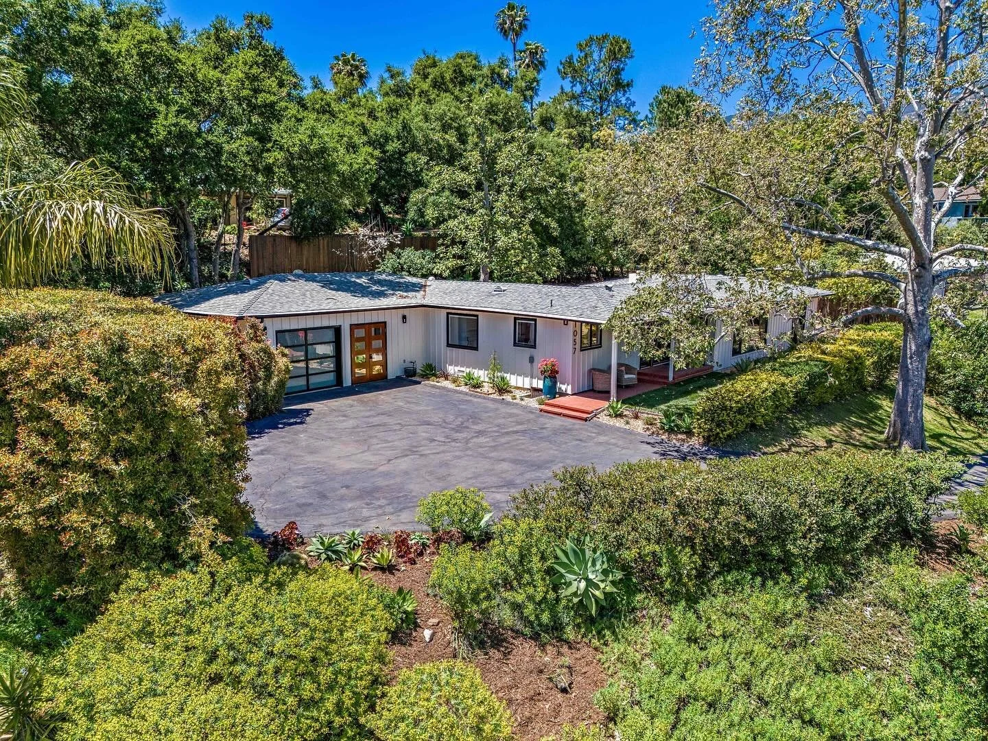 View fullsize 1057 Tunnel Road. Come see us today from 10am-1pm! Mission Canyon Mid-Century 3 bedroom, 2 bath home in a tranquil setting with beautiful mountain views, situated on just under a half acre. Spacious living & dining area with vaulted open beam cei